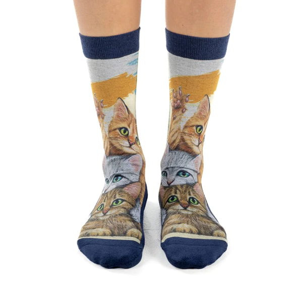 Roliga och bekväma strumpor från Good Luck Socks med ett lekfullt motiv av staplade katter – perfekta som present till kattälskare eller för dig som gillar roliga strumpor med unik design. En perfekt kombination av komfort, kvalitet och personlighet.