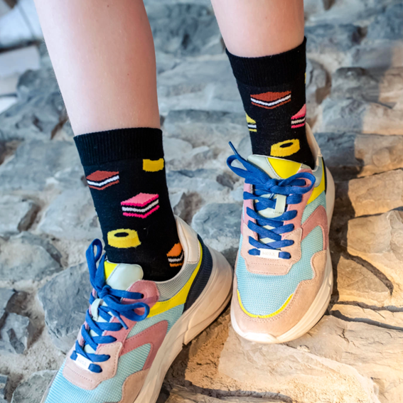 Färgglada och bekväma strumpor från Tint Socks med ett lekfullt motiv av engelsk lakrits – perfekta som present till godisälskare eller för dig som vill ge din outfit en rolig och unik touch. En perfekt kombination av komfort, kvalitet och personlighet.
