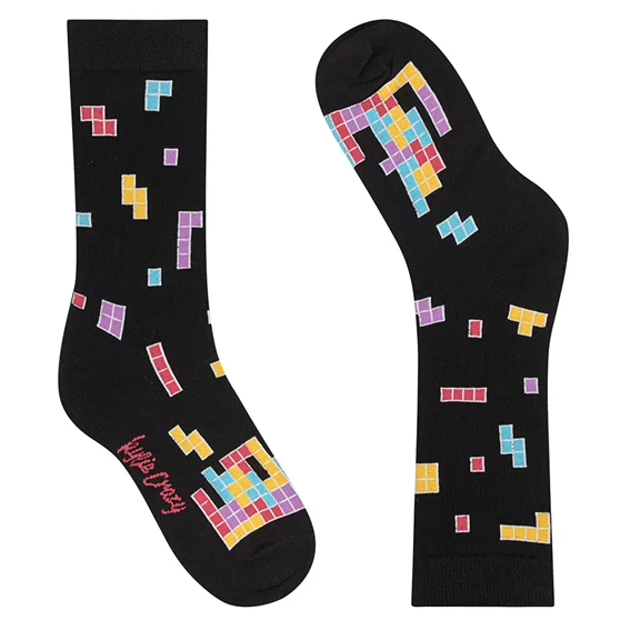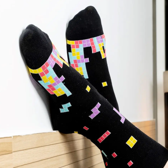 Roliga Tetris strumpor med klassiskt spelmotiv, perfekta för alla som gillar retrospel och färgglada designer. Dessa lekfulla strumpor ger en unik och personlig stil till vardagen.